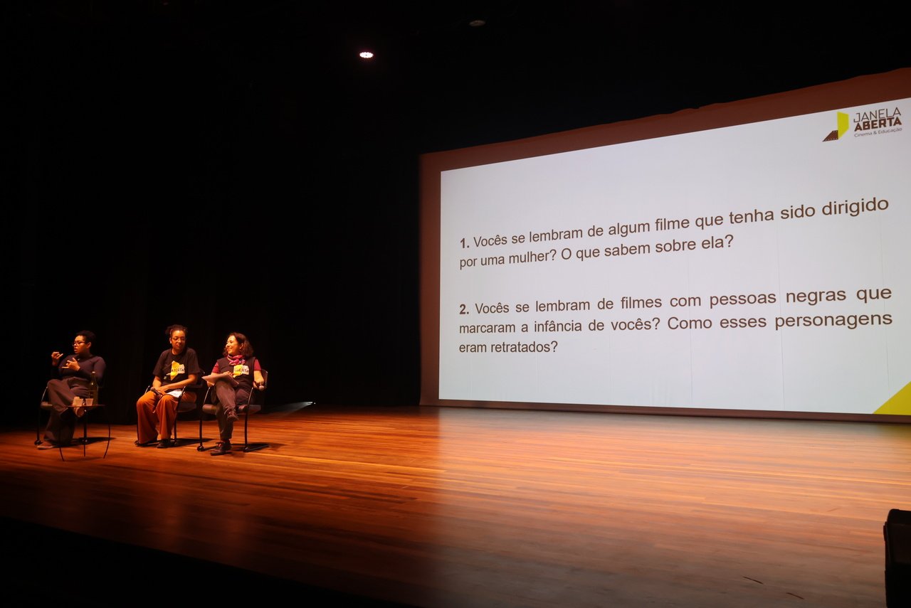 A programação também contou com a palestra “Cinema negro e infâncias: perspectivas femininas”, conduzida por Kamila Gomes e Rita Leão (Coletivo Janela Aberta) com mediação da cineasta Thais Scabio. O encontro promoveu reflexões com professores e educadores sobre representatividade, memória e diversidade no audiovisual.